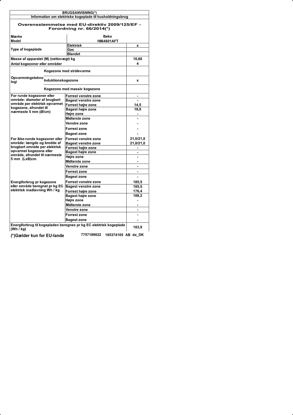 HII64601AFT: Indbygget kogeplade (Induktion, 60 cm)