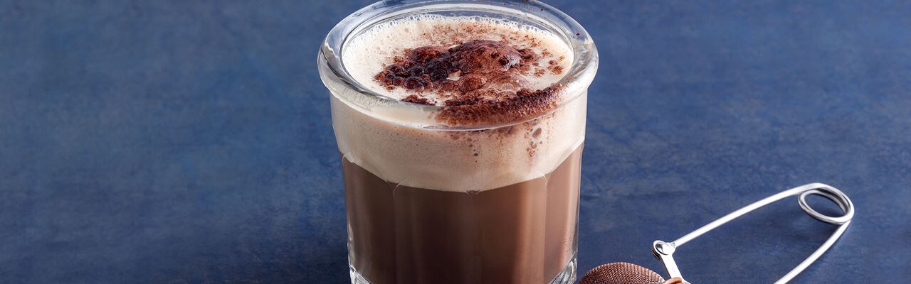 4. اسكب الفرابيه في كوب كبير، ورُش الكاكاو على السطح ثم قدّم الكوب. بالهناء والشفاء!