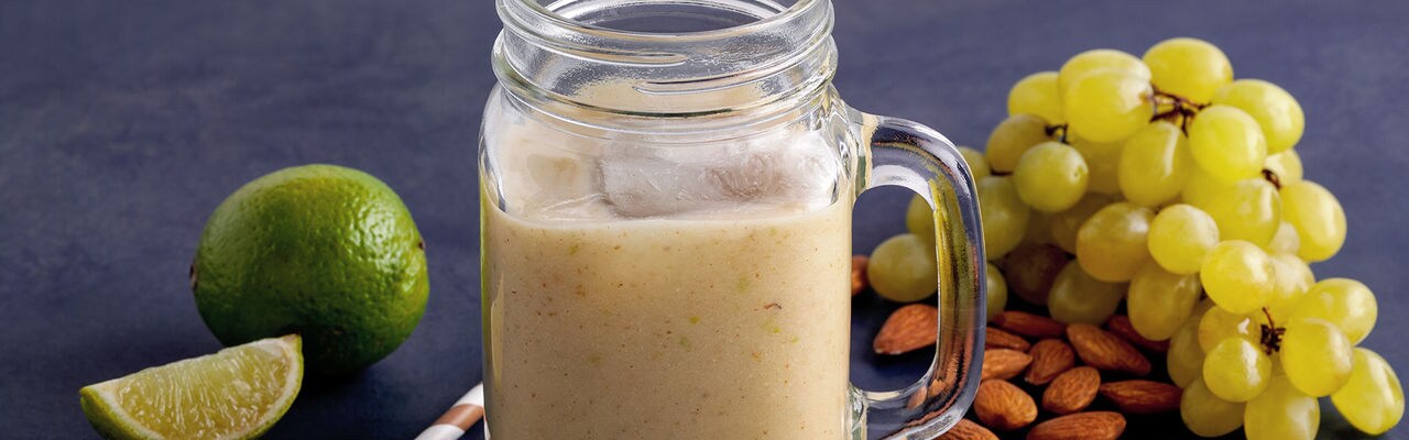 مخفوق العنب الأخضر هذا هو الوصفة المثالية لأيام العمل المشغولة! يُحضَّر من العنب الأخضر الطازج والتمر وقطع الكوسة المجمدة، ومن المؤكد أنه سيمنحك الطاقة التي تحتاجها لدعمك بالطاقة طوال يومك.