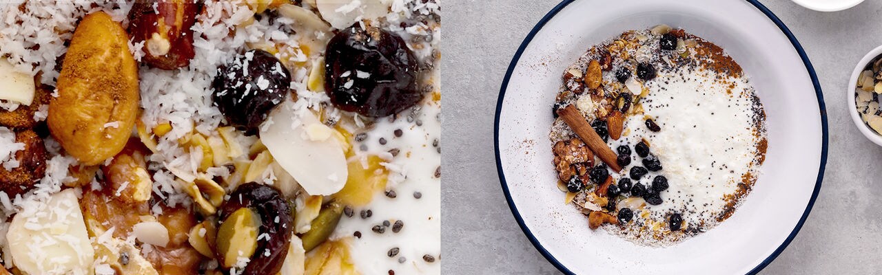 3. Serve with granola, chia seeds, pumpkin seeds, coconut flakes, poppy seeds and