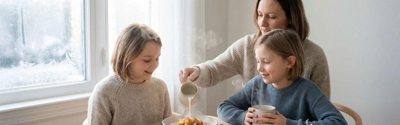 Frost on the window. A quiet house before the first alarm. The kettle hums, the oven light glows, and breakfast sets the tone for the day. In winter, small rituals bring big comfort. Warm bowls, toasted edges, steady heat, and a plan that keeps everyone fed without the rush.