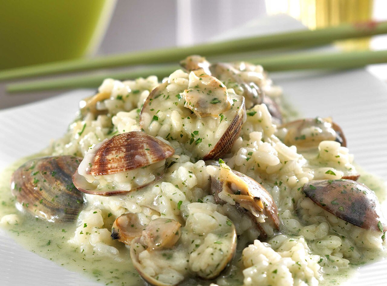 1. Mezclar el arroz con las almejas a la marinera y dejar cocer el conjunto durante un minuto más. Rectificar el sazonamiento y servir.