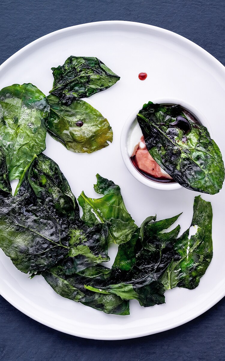 Una nueva era para los adictos a las patatas fritas comienza con esta receta: Patatas fritas de espinacas con yogur. Las espinacas son una de las verduras más nutritivas por sus vitaminas y minerales. Además, el yogur es rico en calcio y probióticos. La combinación de estos dos puede convencerte de dejar de comer todos los demás aperitivos y consumirlas en su lugar.