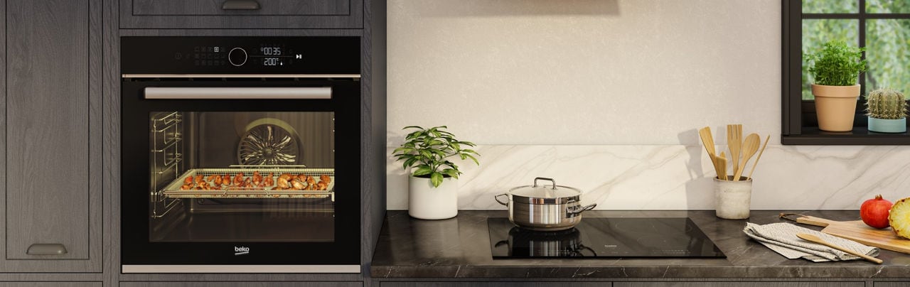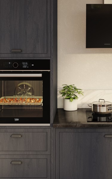 - Hornos estéticos: Los hornos de Beko, con acabados en cristal oscuro, están pensados para ser vistos desde el comedor sin desentonar.
