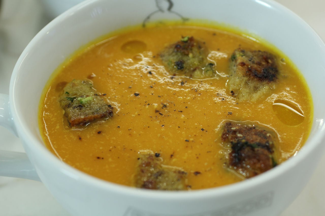 - Sirve la crema caliente en platos hondos y reparte por encima los picatostes crujientes. Puedes decorar con unas hojas de perejil fresco o un hilo de aceite de oliva virgen extra.