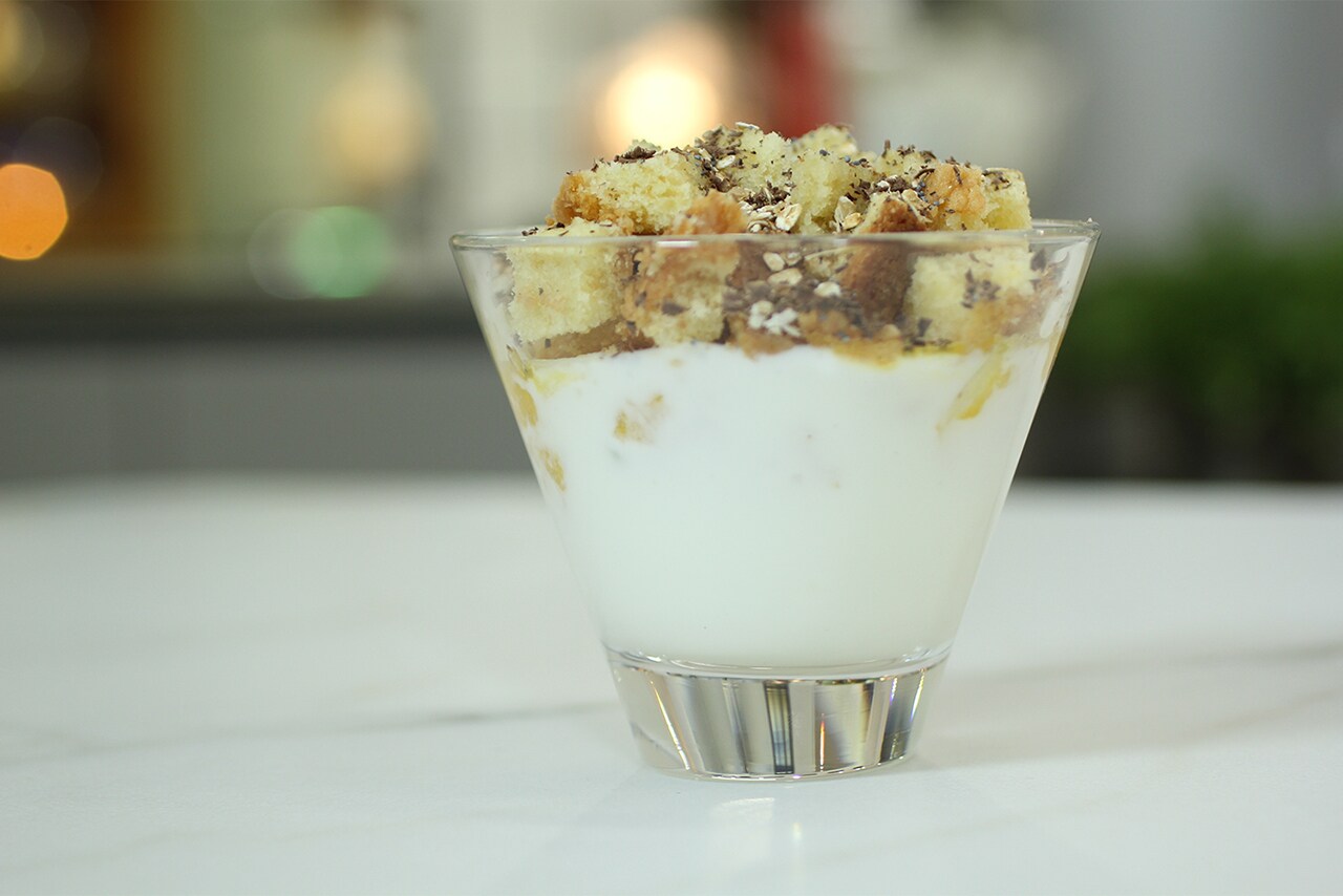 8. Rematar con el muesli y rallar el chocolate por encima.