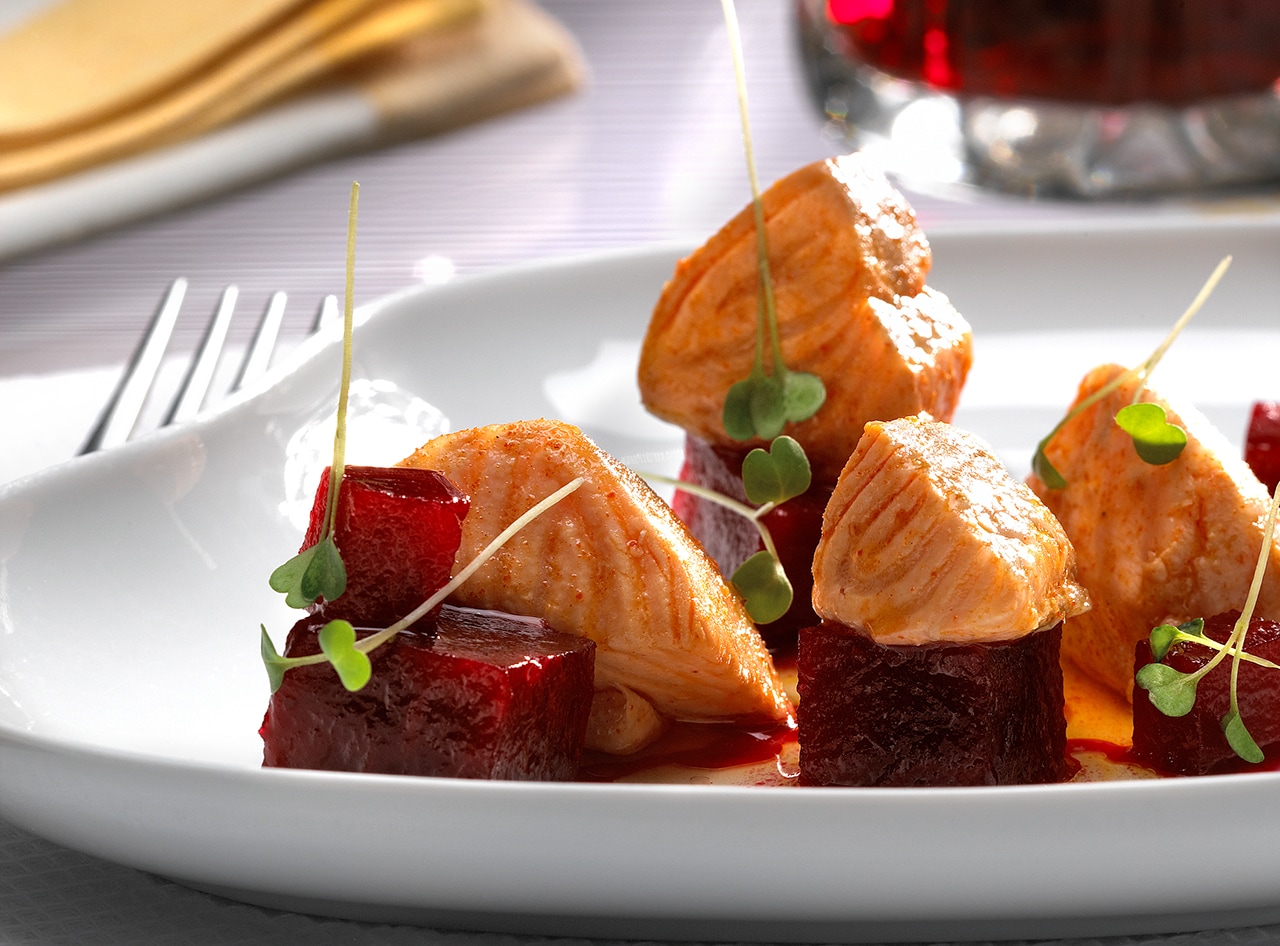- 800 g de salmón fresco cortado en tacos de 3x3 cm