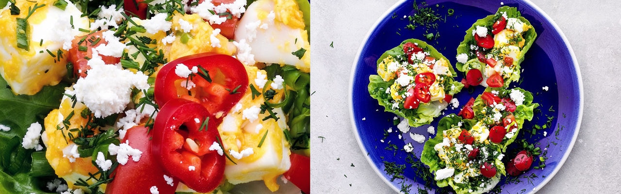 7. Colocar la mezcla dentro de las hojas de lechuga: poner encima los tomates y la guindilla. Servir con eneldo espolvoreado. ¡Buenísimo!