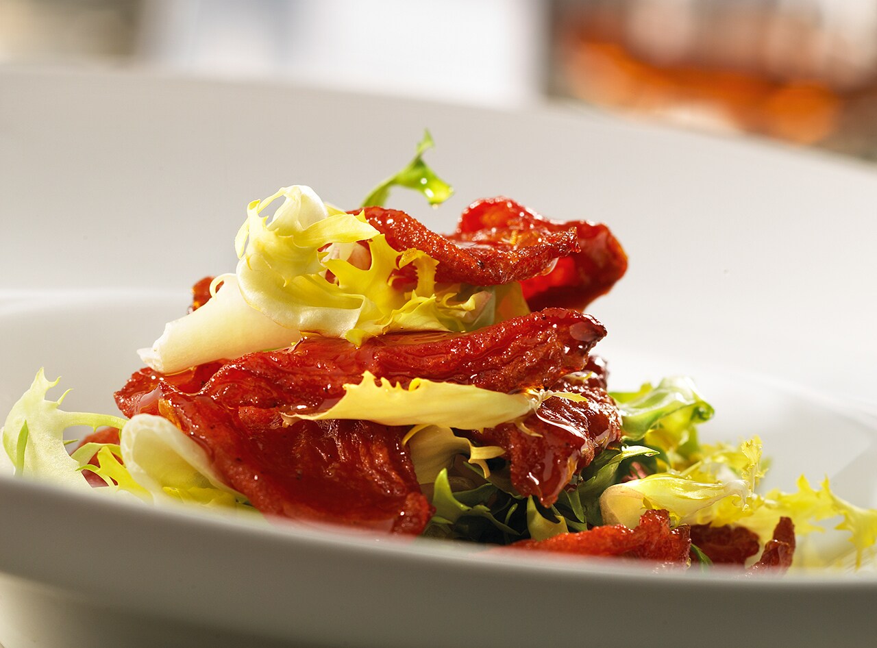 Pasado ese tiempo, les damos la vuelta y los tenemos en la misma bandeja otras 2 horas más. El tomate debe quedar confitado, seco, deshidratado pero mantener su tonalidad rojo intensa, en ningún caso deberán dorarse o quemarse, sinónimo de excesiva temperatura.