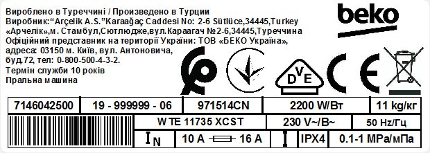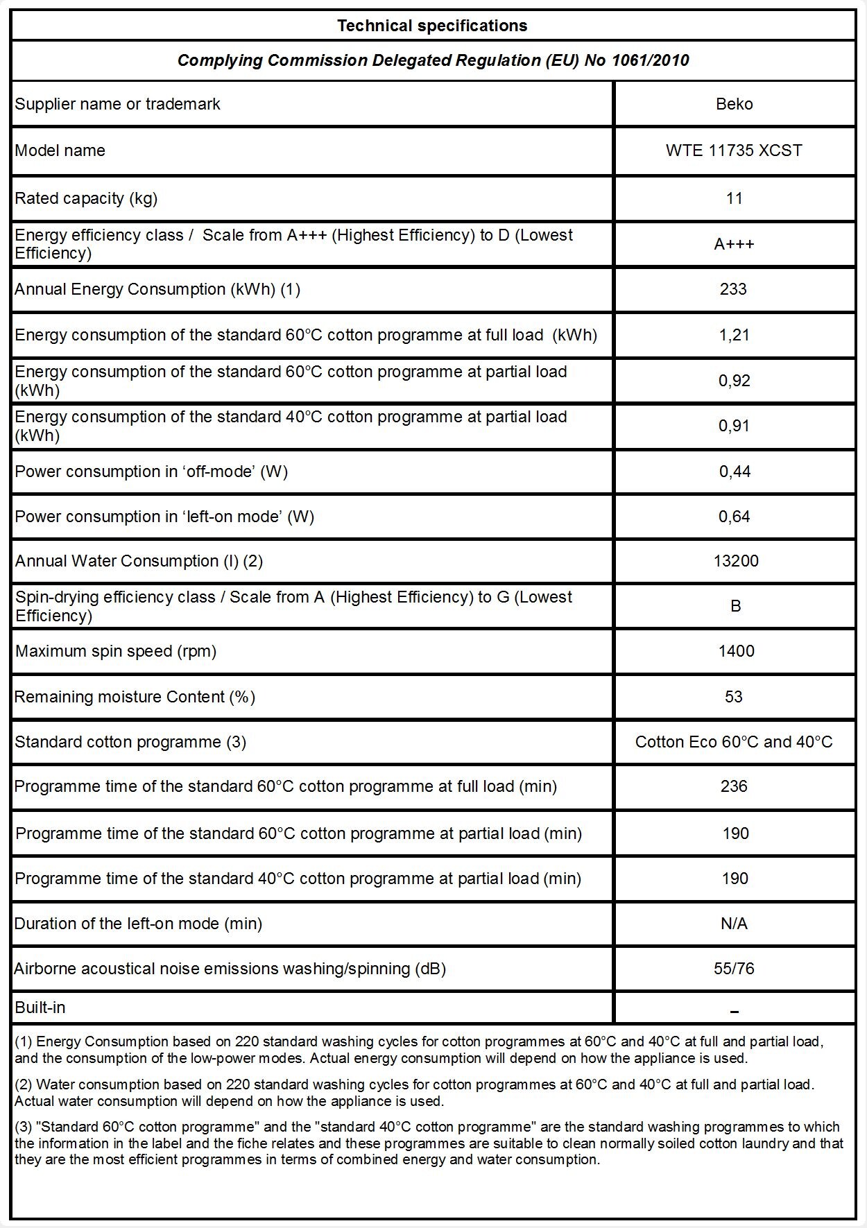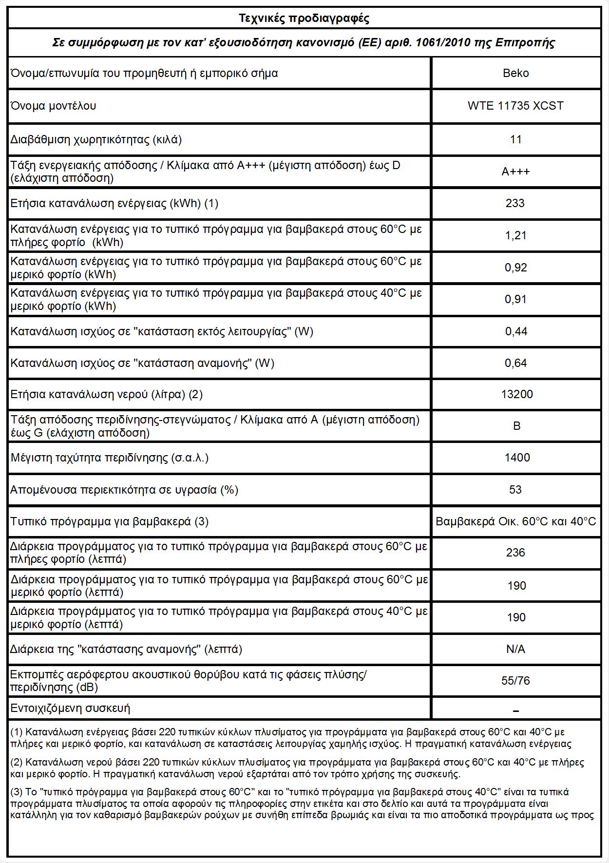 WTE 11735 XCST: Ελεύθερο Πλυντήριο Ρούχων (11 kg, 1400 σ.α.λ.)