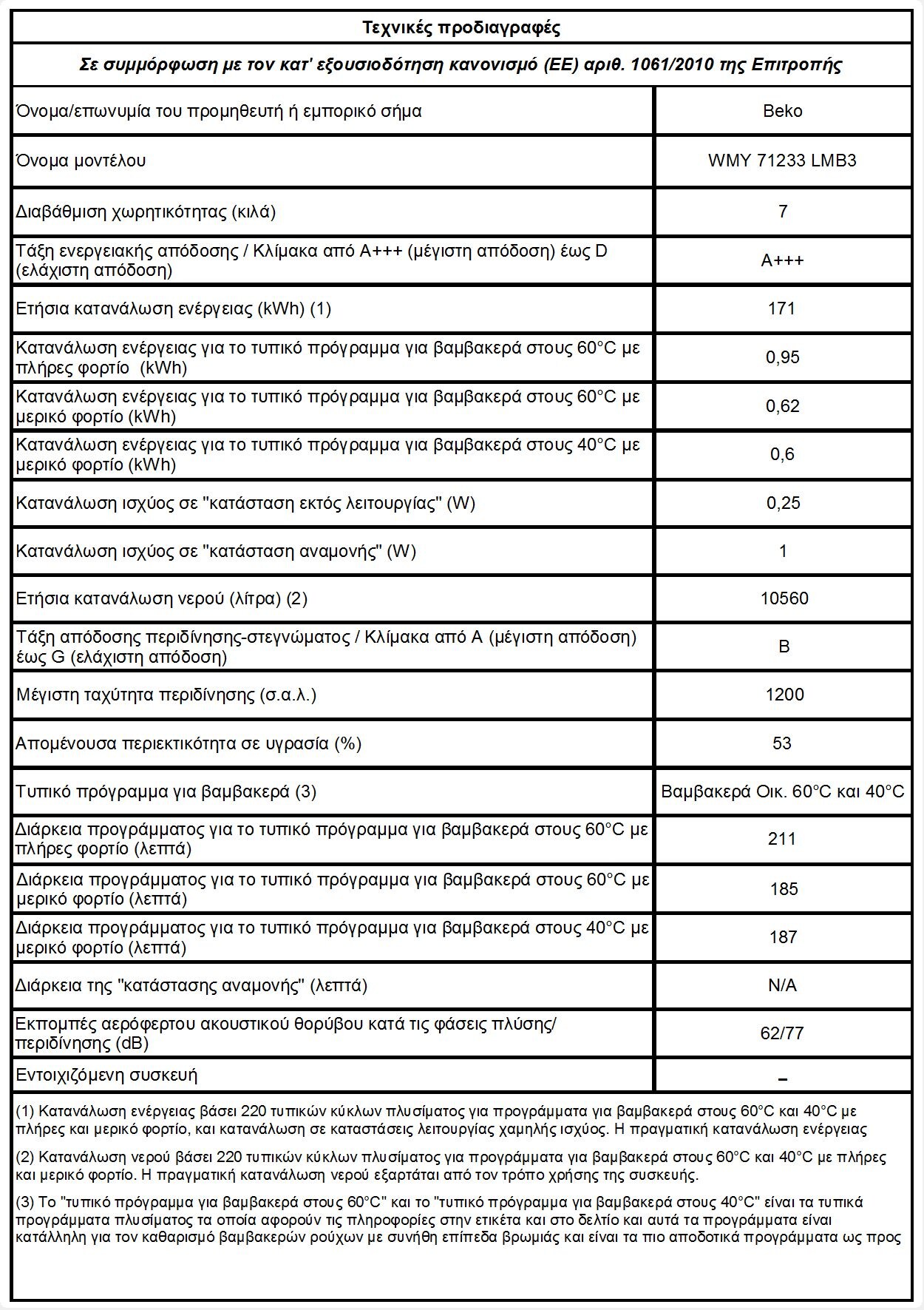 • Κλάση ενεργειακής απόδοσης A+++