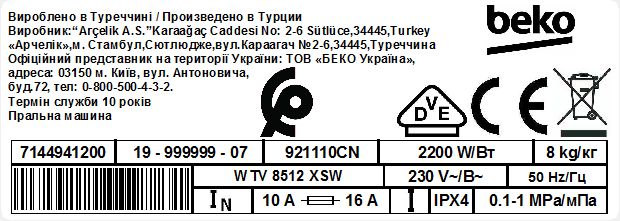 WTV 8512 XSW: Ελεύθερο Πλυντήριο Ρούχων (8 kg, 1000 σ.α.λ.)