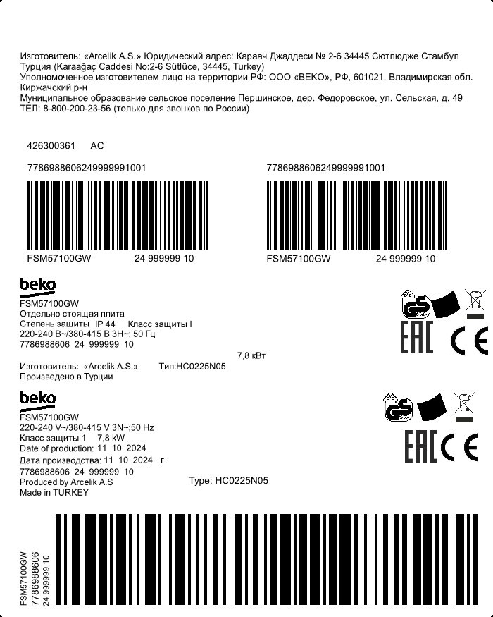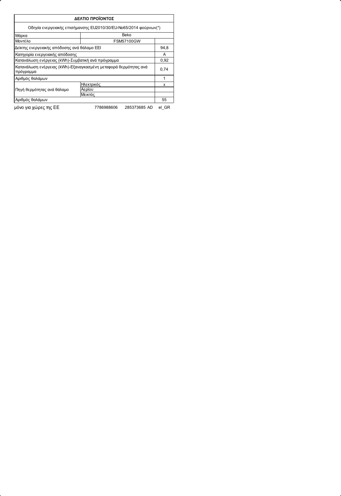 FSM57100GW: Ελεύθερη Κουζίνα (Πολυλειτουργική, 50 cm)