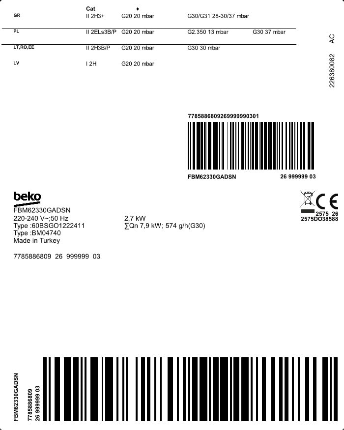 FBM62330GADSN: Ελεύθερη Κουζίνα (Πολυλειτουργική, 60 cm)