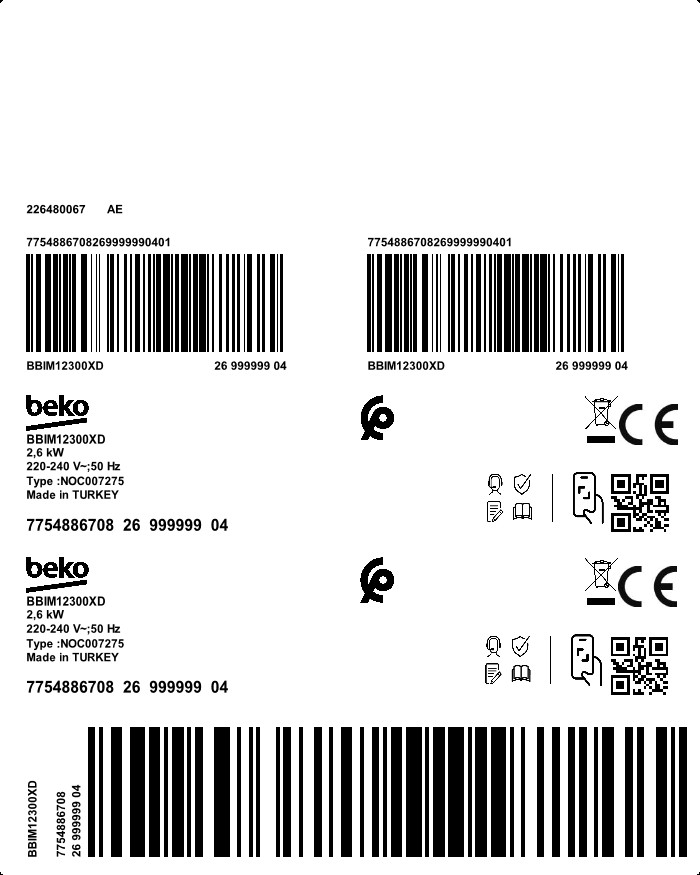 BBIM12300XD: Εντοιχιζόμενος φούρνος (60 cm, 72 L)