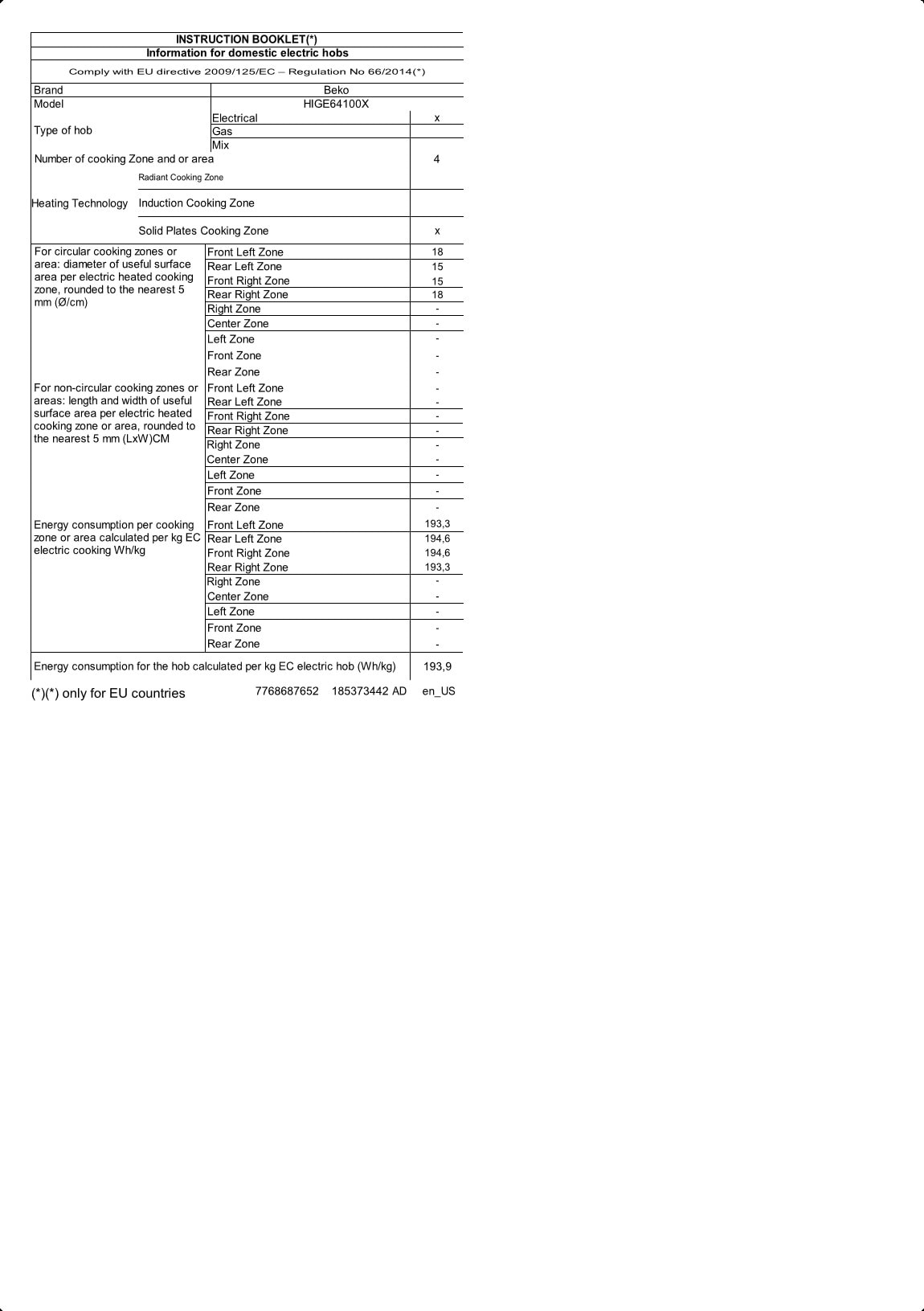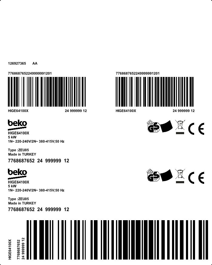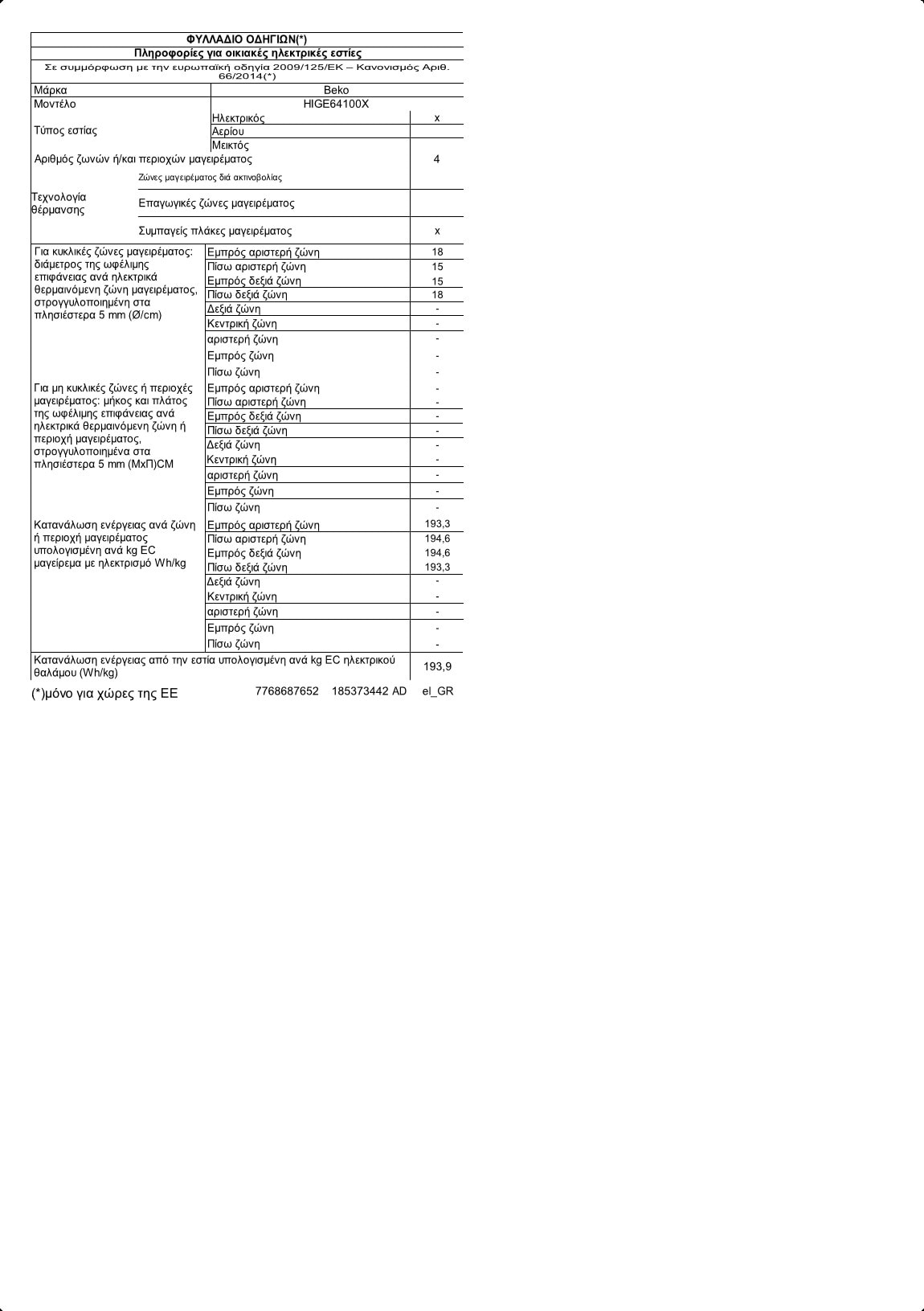 HIGE64100X: Εντοιχιζόμενη Εστία (Ηλεκτρική, 61)