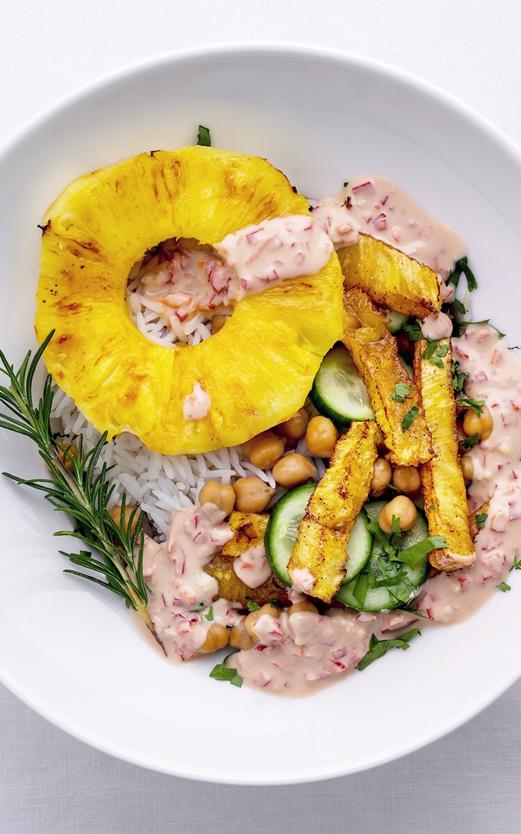 Bowls are now a part of our meals. In the past, we used to arrange all the dishes on the table on separate plates. Then we would collect the dishes from the table for hours after the meal. Now bowls save our lives.In this recipe, well use ingredients that come together to create the perfect meal. Especially the pineapple will be the star of this bowl.