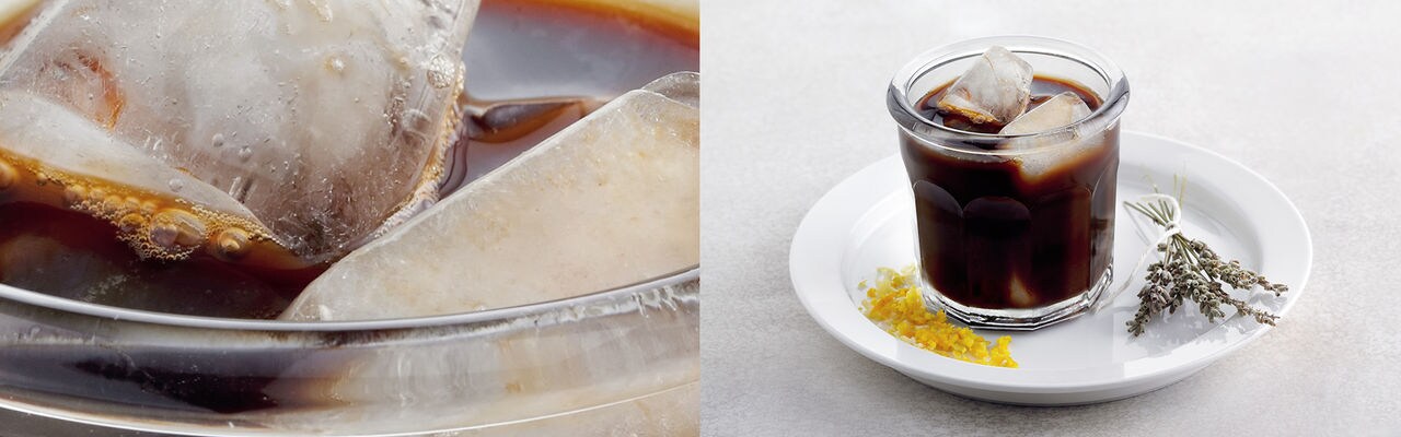 3. To serve, pour 80 ml of coffee brewed for 6 hours into glasses filled with ice and
