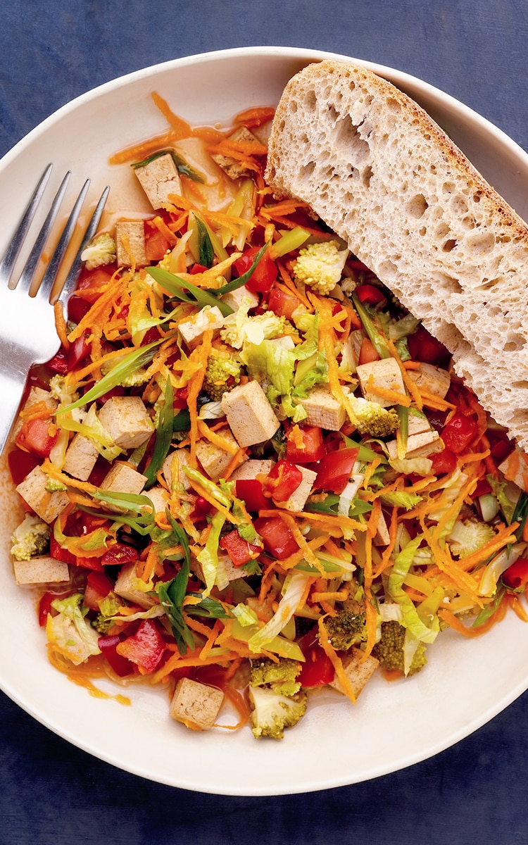 1. Place the tofu in a bowl, pour over the marinade and mix together. Make sure all the