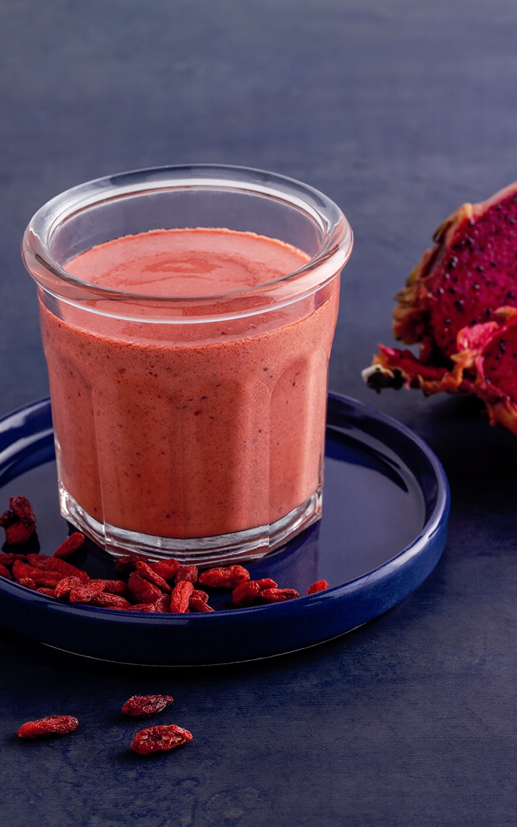 1. Blend the dragon fruit, berries, and milk together until smooth.