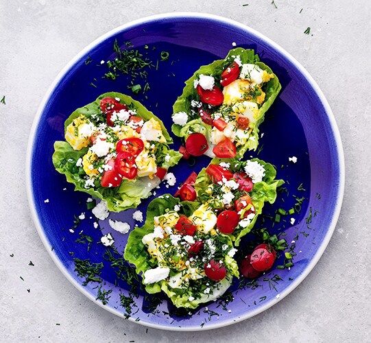 6. Place the mixture inside the lettuce leaves: place tomatoes and chili pepper on top. Serve with sprinkled dill. Enjoy!
