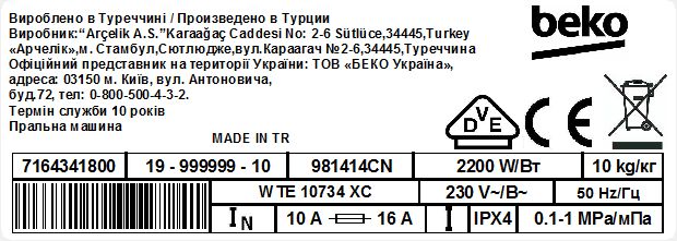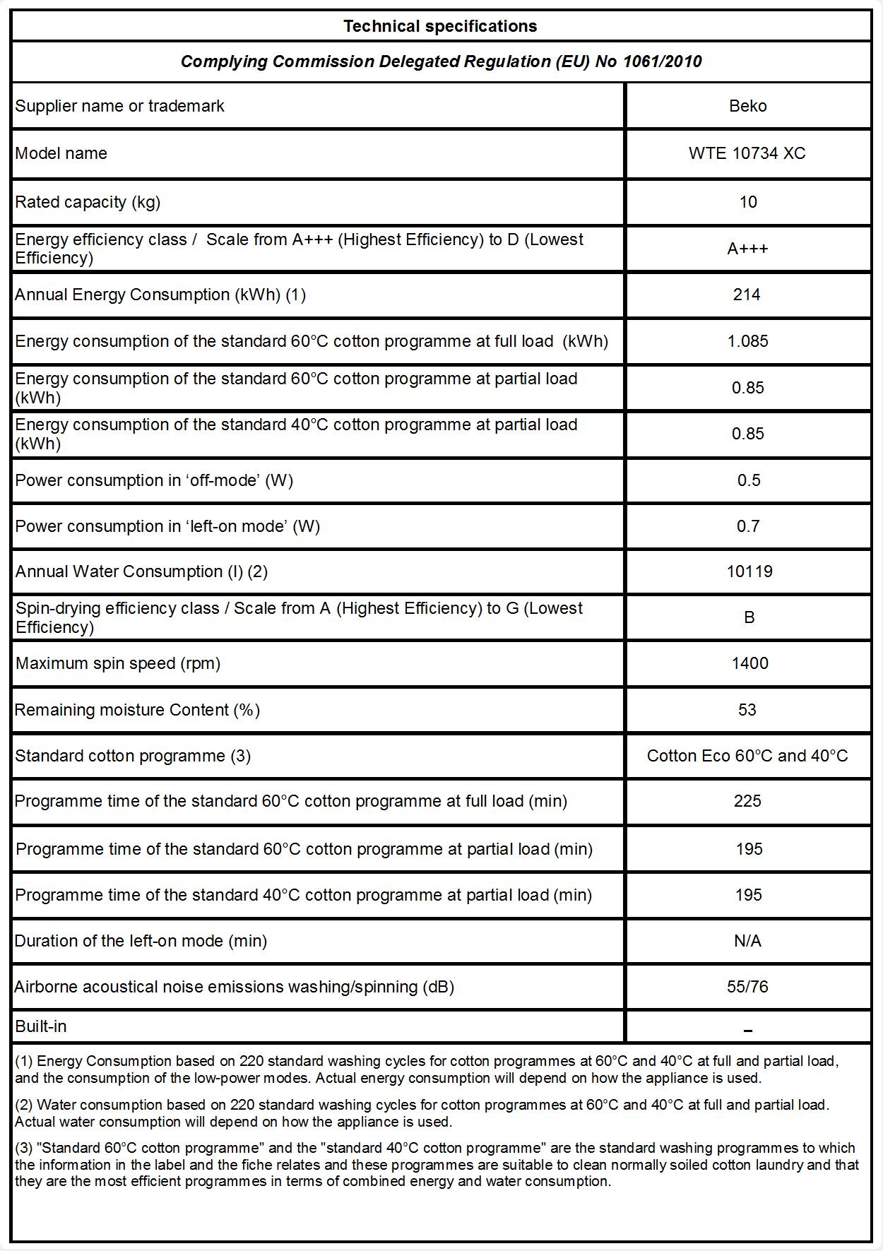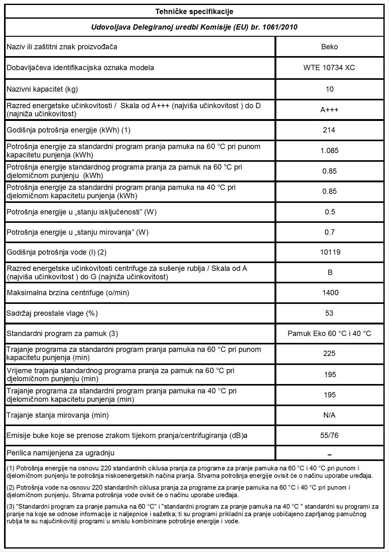 WTE 10734 XC: Samostojeća perilica rublja (10 kg, 1400 okr/min)