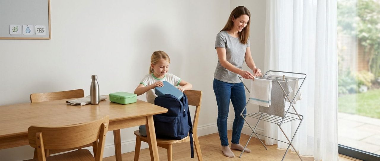 A reggelek gördülékenyebbek, ha az otthon csendes, jól működő rutinokra épül. A vízforraló dolgozik, a mosás elindul, az uzsonnák elkészülnek, és nyugodtan indulhatsz el, tudva, hogy minden rendben lesz. Ez a folyamatos működés energiát és vizet igényel, ezért a kisebb változtatások is összeadódnak a hét során.