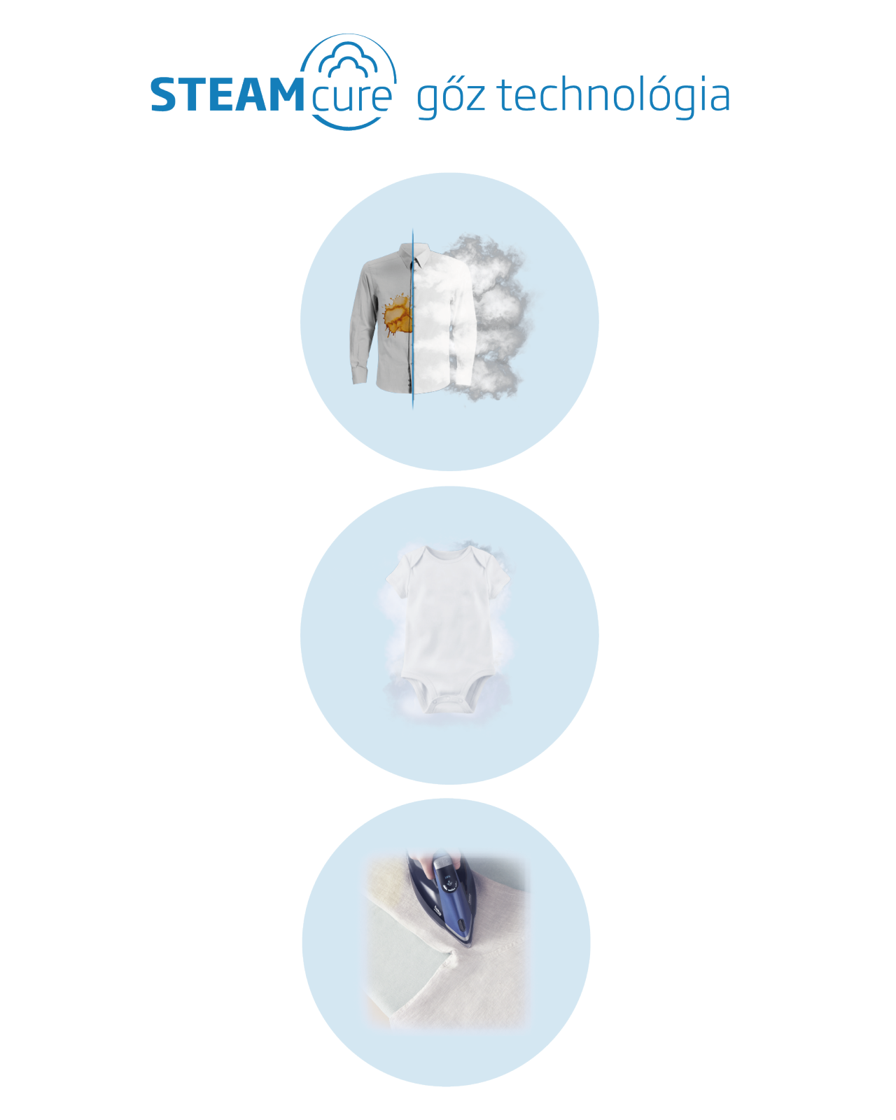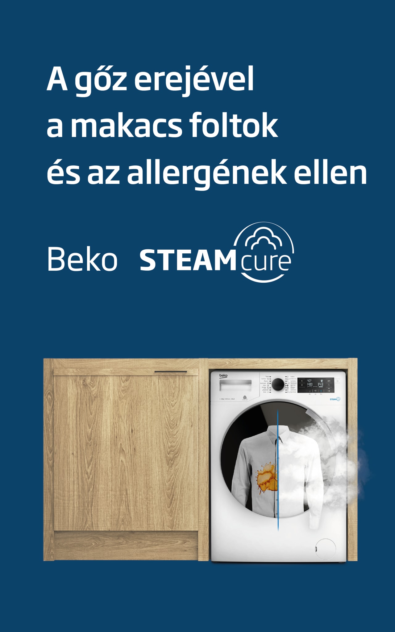 Ezért nincs szükség a ruhanemű előmosására, áztatására vagy további mosószer vagy folteltávolító használatára. Csak adja hozzá a SteamCure gőzfunkciót a kiválasztott programokhoz, és a gőz ereje elvégzi Ön helyett a piszkos munkát.