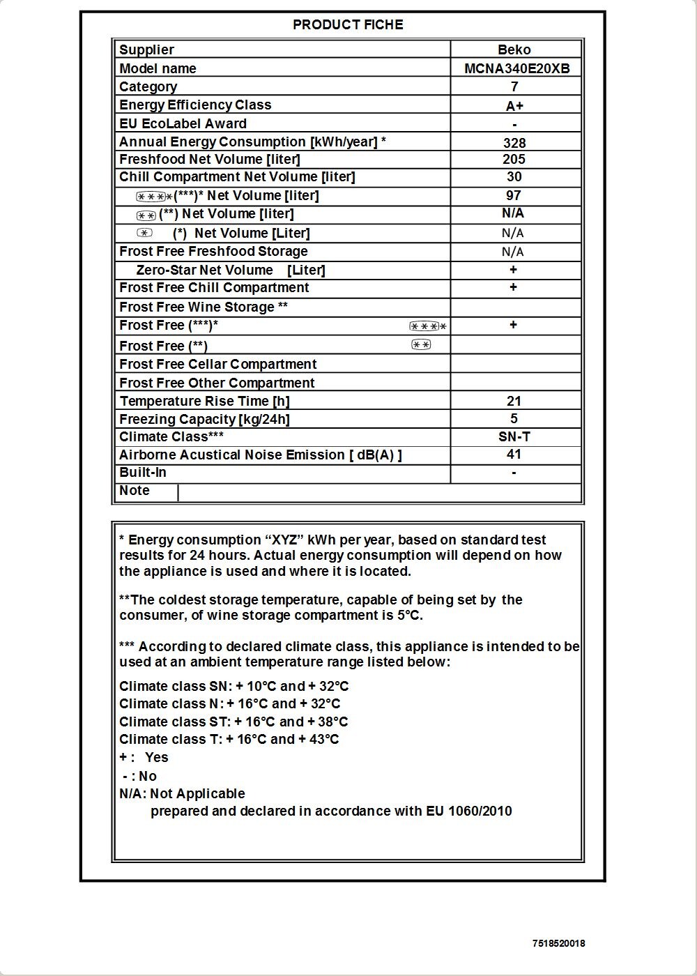 MCNA340E20XB: Hűtő-fagyasztó készülék (Alulfagyasztós, 59.5 cm)
