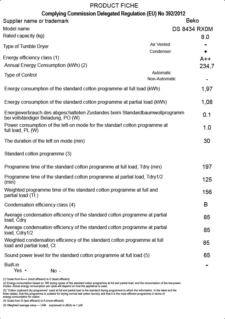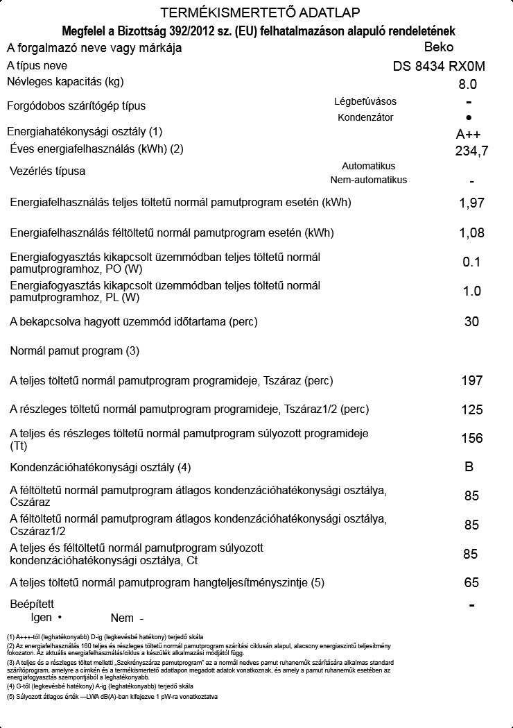DS 8434 RX0M: Szárítógép (Hőszivattyú, 8 kg)