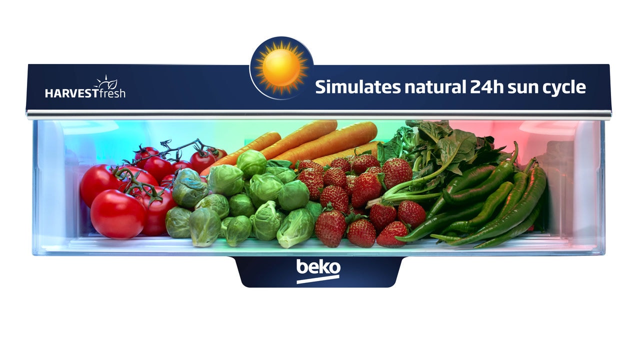 Fitur Harvest Fresh adalah teknologi mutakhir yang dirancang untuk meniru efek sinar matahari alami dalam kulkas. Dengan mensimulasikan tiga jenis spektrum cahaya matahari — merah, hijau, dan biru — fitur ini menciptakan lingkungan yang mendekati kondisi penyimpanan di luar ruangan. Setiap spektrum cahaya memiliki peran penting dalam proses fotosintesis tanaman, yang mempengaruhi bagaimana buah dan sayuran mempertahankan kesegaran dan nilai gizi mereka.