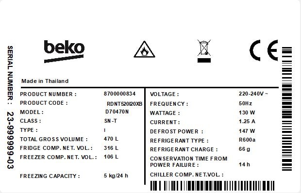RDNT520I20XB: ثلاجة مع فريزر (فريزر علوي, 70 سم)