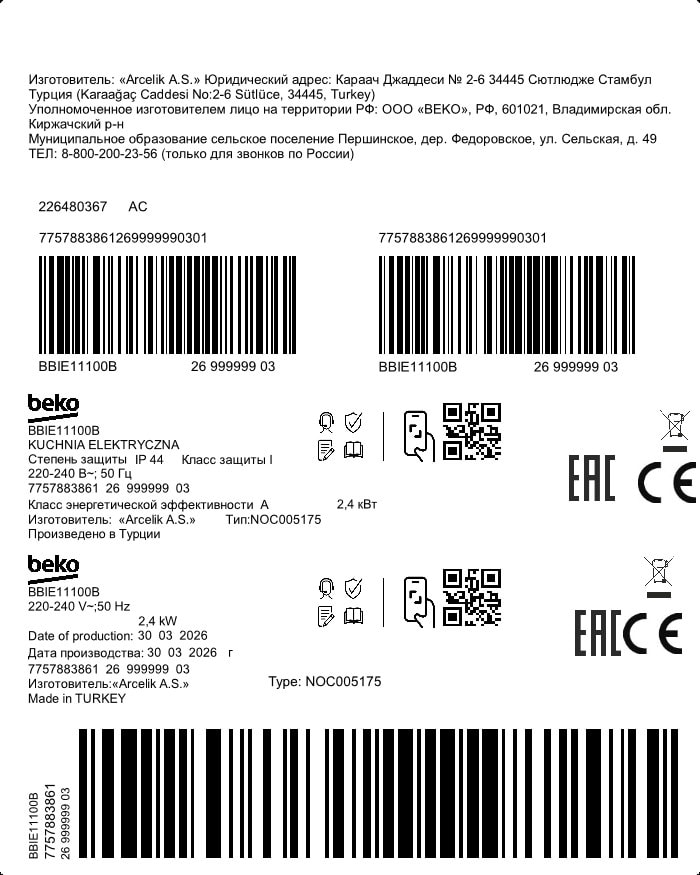 BBIE11100B: Forno Beyond Multifunzione, b100, 6 Funzioni