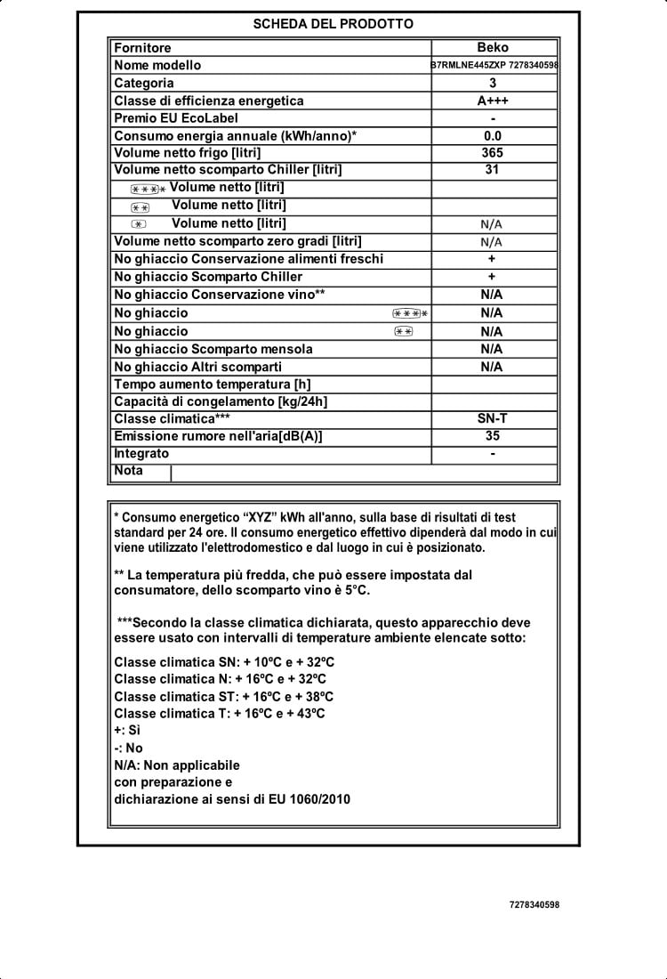 B7RMLNE445ZXP: Frigorifero Monoporta Beyond, Total No-Frost, 59.5 cm