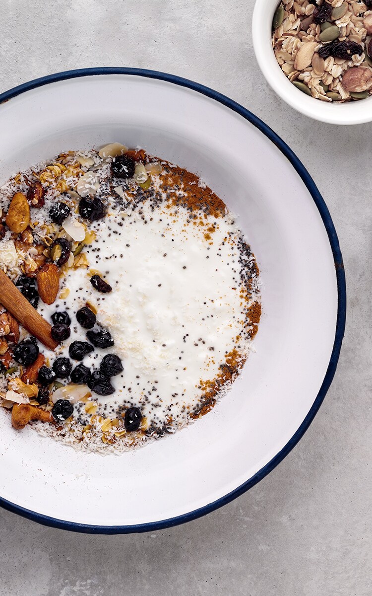 2. Top with your favourite granola and fresh blueberries. Sprinkle with ground