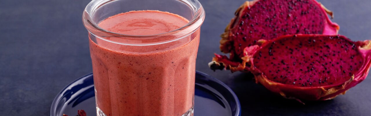 This delicious dragon fruit smoothie is made with coconut milk and is completely gluten-free. Its the perfect refreshing drink for a hot summer day or any day for that matter. The dragon fruit gives the smoothie a beautiful pink color, and the coconut milk makes it nice and creamy. If youre looking for a healthy and delicious smoothie, this is the one for you.