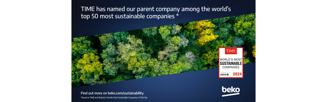 At Beko, we are thrilled to announce that our commitment to sustainability has been recognized on a global scale. Beko has achieved an impressive 44th place on TIME Magazine and Statista’s inaugural list of the World’s Most Sustainable Companies for 2024. This prestigious ranking places us among the top 500 global companies leading the way in sustainable practices and highlights our unwavering dedication to eco-friendly operations and net-zero goals.