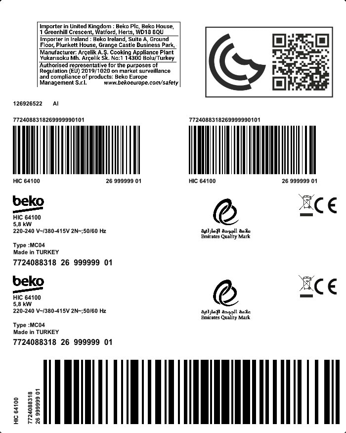HIC 64100: Built-In Hob (Vitroceramic, 60 cm)