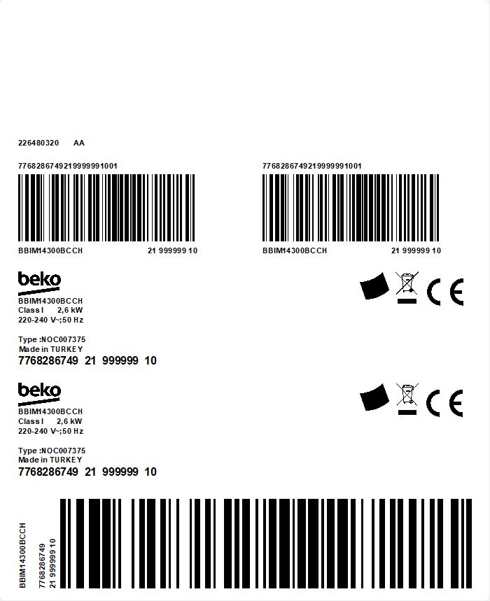BBIM14300BCCH: Built-In Oven (60 cm, 72 L)