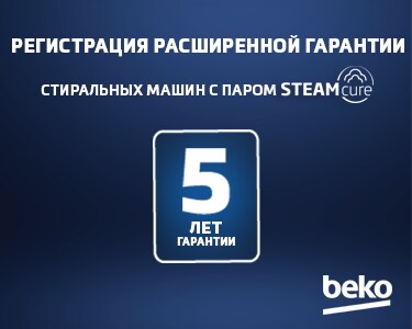 «5 років гарантії на пральні машини beko з технологією SteamCure™»