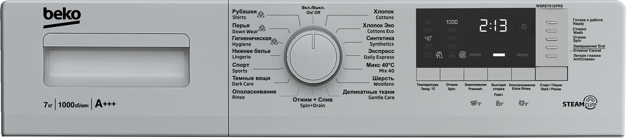 product: Стиральная машина, 60 см, 7 кг, 1000 об/мин, SteamCure