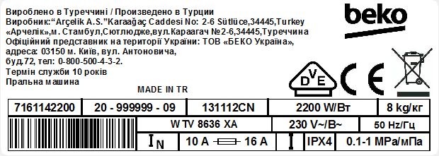 product: Стиральная машина, 60 см, 8 кг, 1200 об/мин