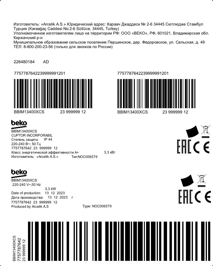 BBIM13400XCS: 60 см 72 л Мультифункциональный Встраиваемый духовой шкаф
