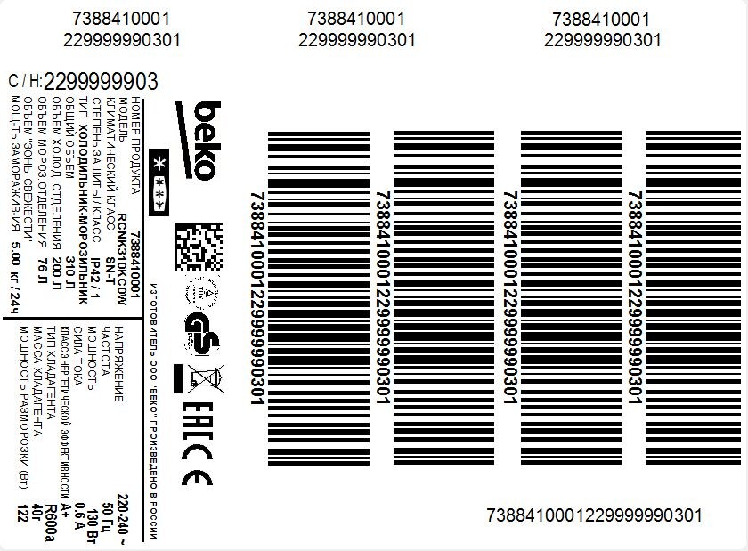 RCNK310KC0W: Холодильник с морозильной камерой, NoFrost
