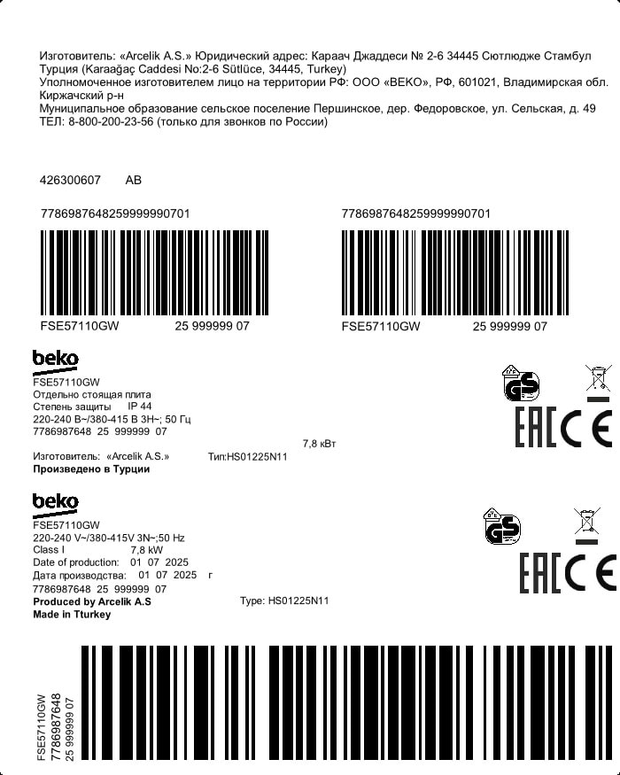 FSE57110GW: Отдельностоящая плита (Нагревательный элемент, 50 см)