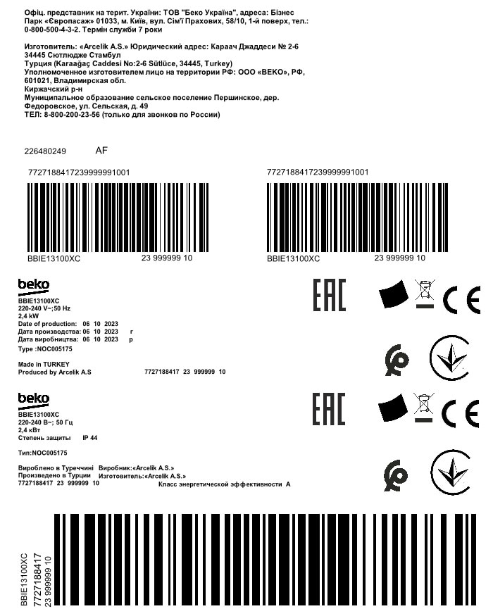 BBIE13100XC: Встраиваемый духовой шкаф (60 см 72 л)