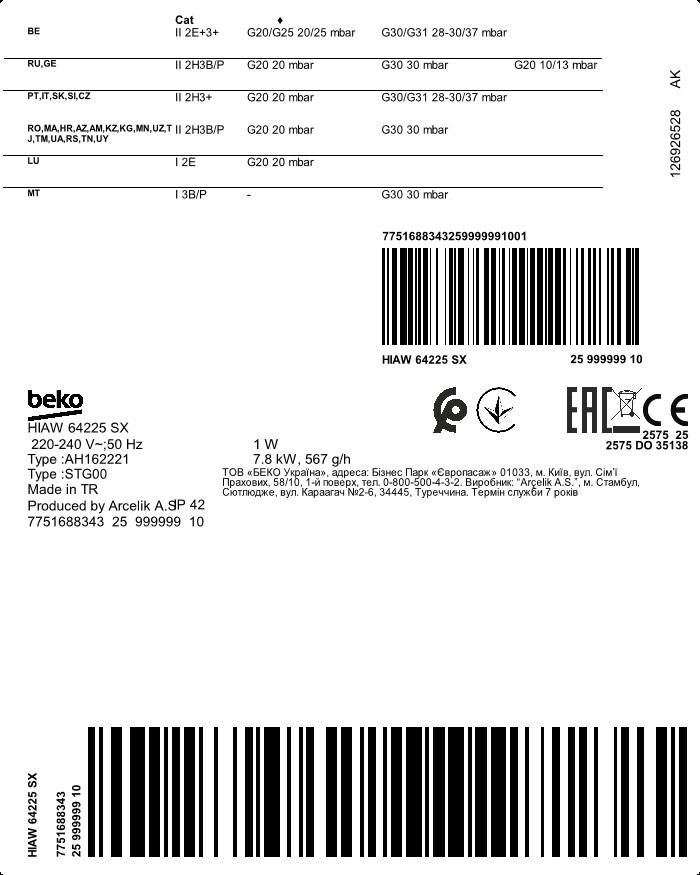 HIAW 64225 SX: Газовая варочная поверхность, металл, 60 см