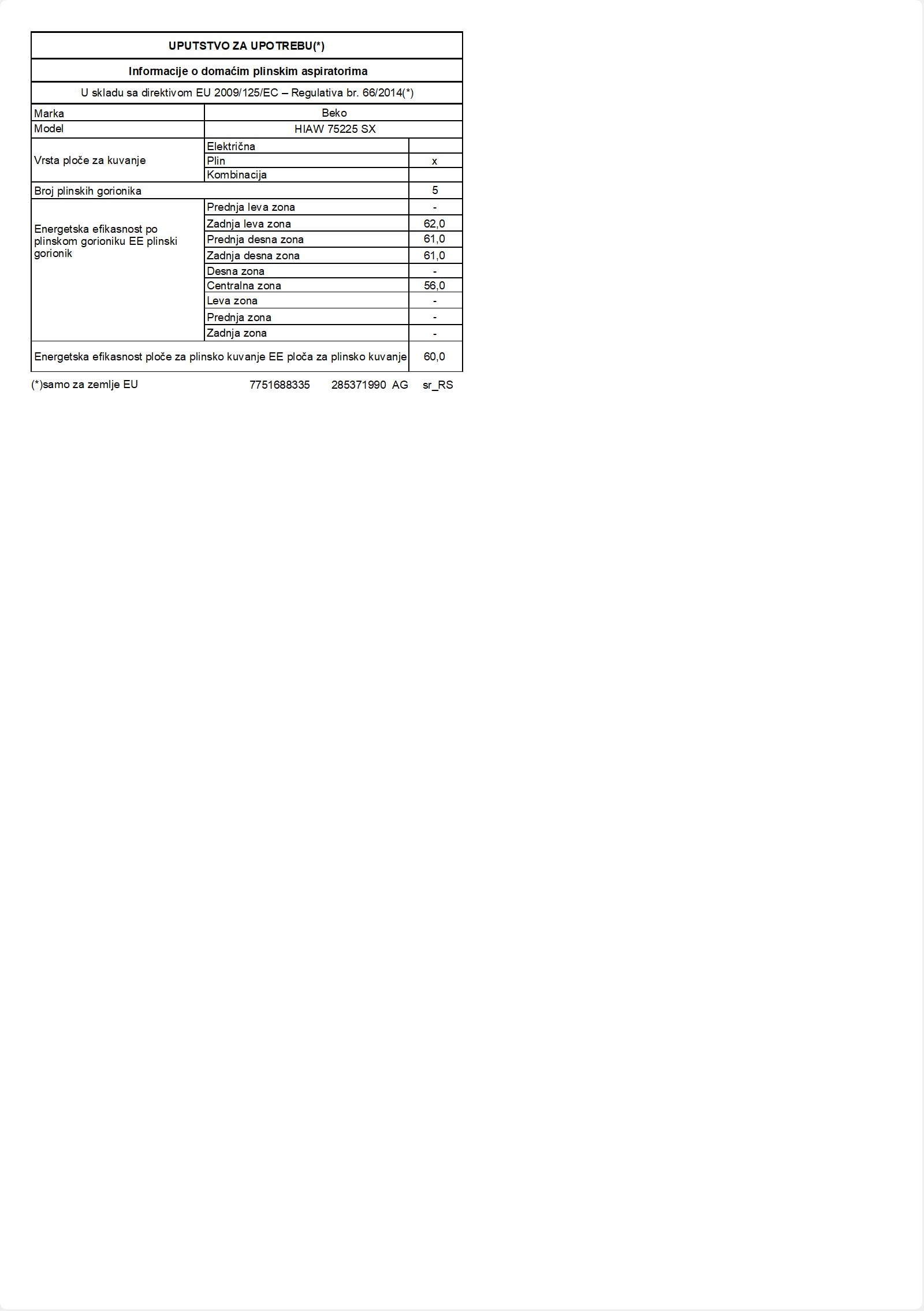 HIAW 75225 SX: Газовая варочная поверхность, стекло, 75 см