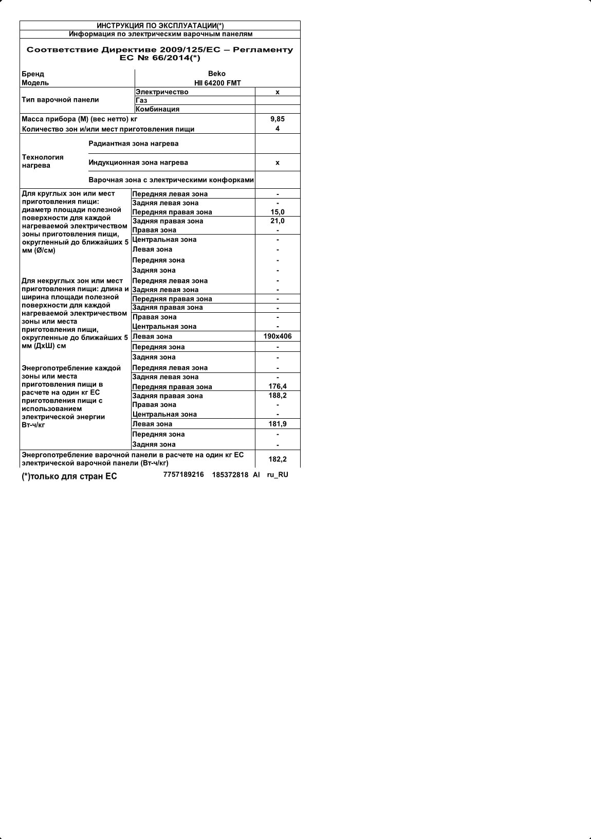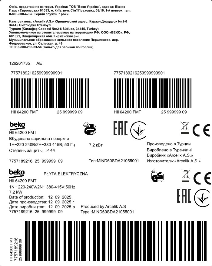 HII 64200 FMT: Индукционная варочная поверхность, 60 см