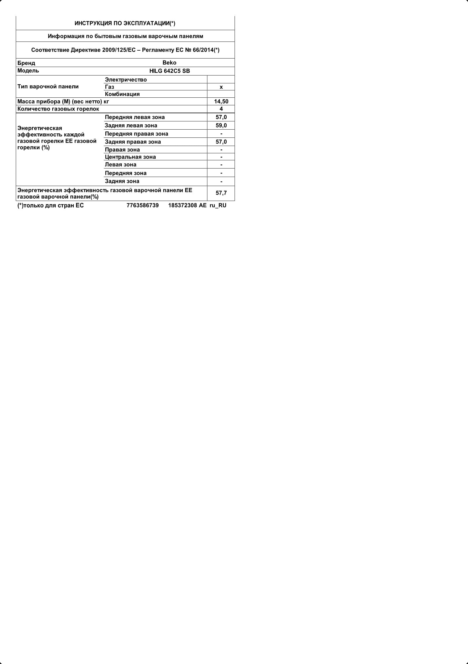 HILG 642C5 SB: Встраиваемая варочная поверхность (Газовая, 60 см)